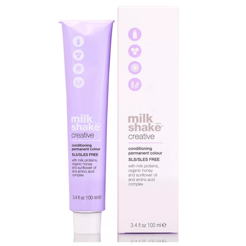 The Milk Shake Advanced Creative Permanent Color Formula contains an innovative amino acid complex. This complex of 18 amino acids derived from wheat and soybean replaces any use of animal-derived keratin. A conscious choice to ensures the high quality of the product and its effective performance on hair, without any compromises. Nature merges with technology in order to bring brightness, protection, and vitality to hair. Milkshake colors increase elasticity and strengthen hair. Increases brightness and the health of hair strands. Hydrates and reduced the frizziness effect.