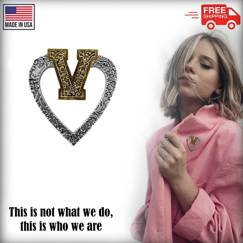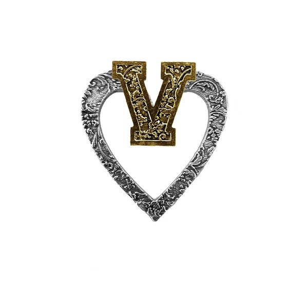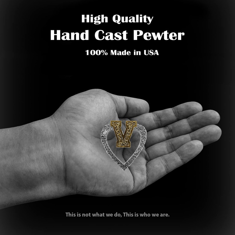 - MADE IN THE USA: Each V Letter Heart Pin is handcrafted by American artists. Most pins come in 4 variations: Pewter, Copper Plated, Gold plated, and Painted