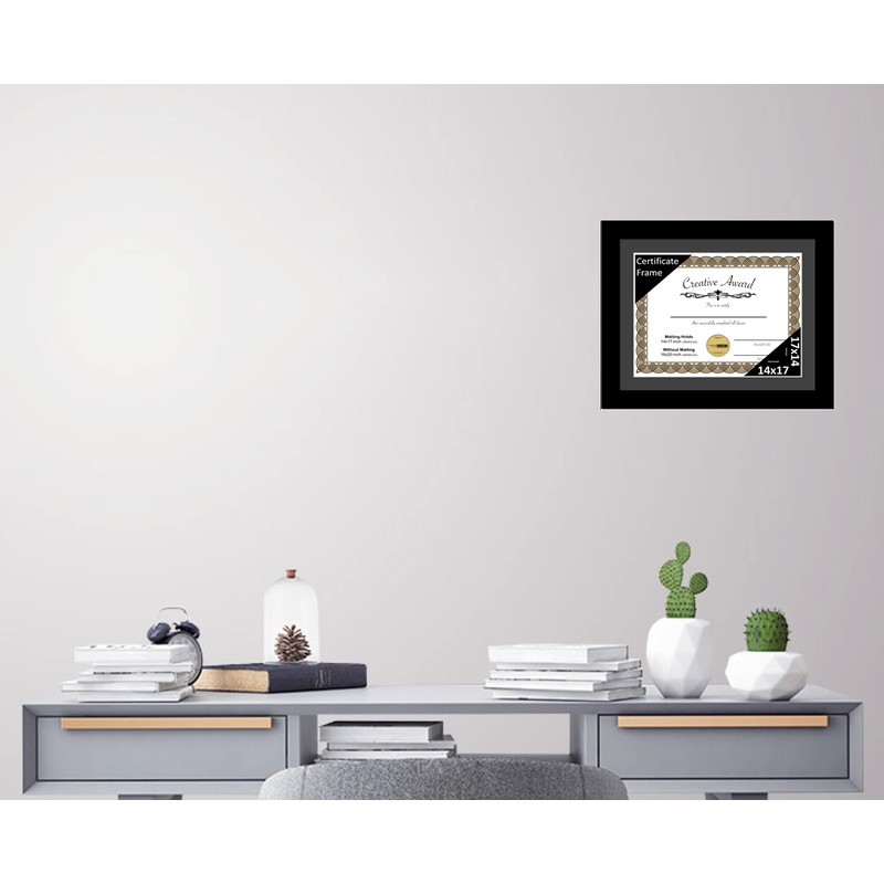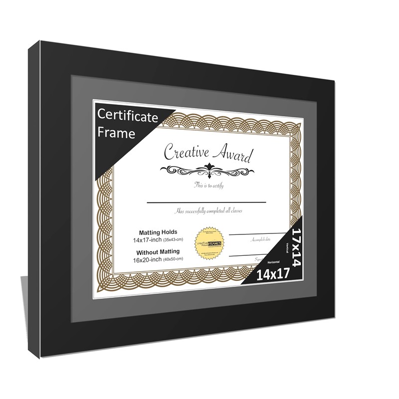 Creative Picture Frames 14x17 Manhattan Black Certificate Degree Graduation Frame with Black Mat including Glass | Frame Holds 16x20 Media without Mat