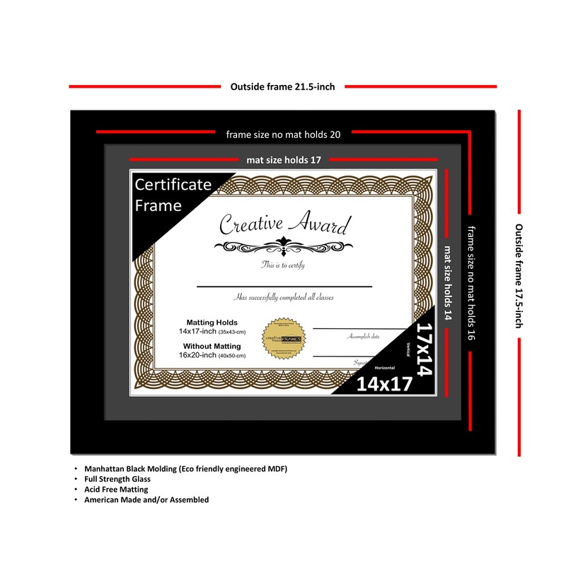 - SIZE: Matting holds 14x17-inch document (13.5"x16.5" mat cut out size) without mat frame holds 16x20-inch document / media