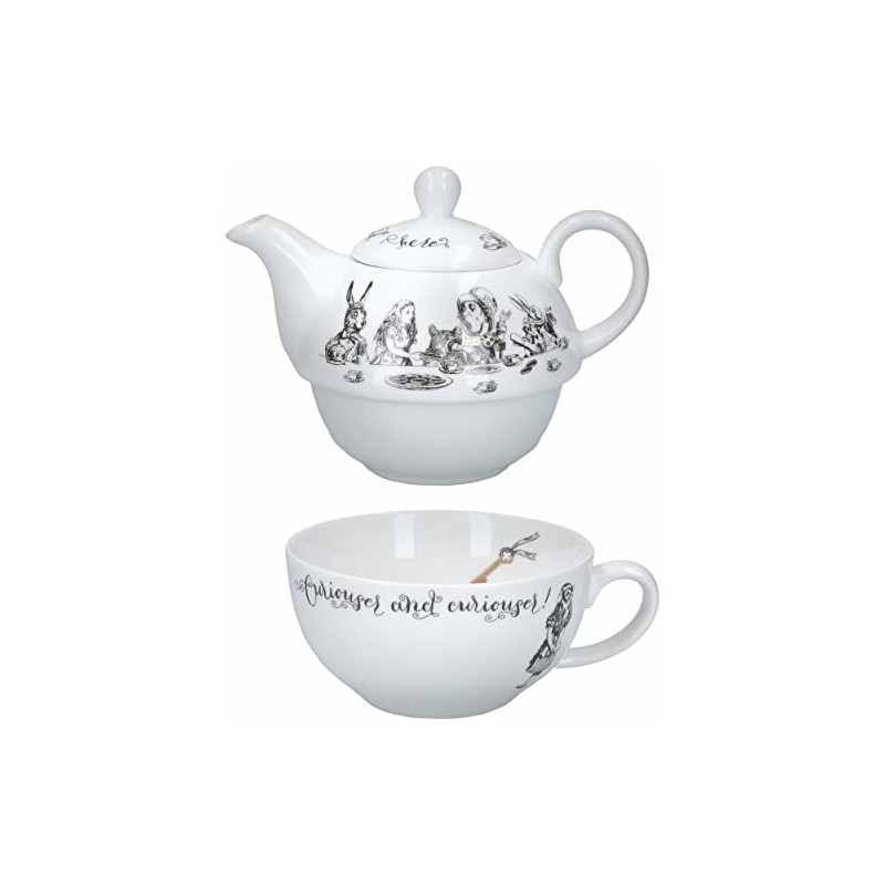 Creative Tops V&A Alice in Wonderland Teapot and Cup Set for 1 in Gift Box, Fine China Tea Set, White, 250 ml