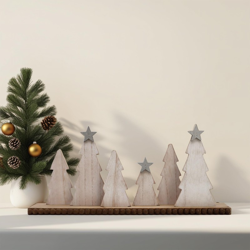 - The Christmas table decorations are mainly made of fir wood and MDF, which are sturdy and durable to ensure long-term use.