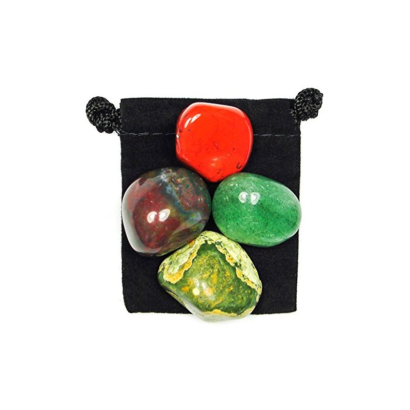 Creativity Boost Tumbled Crystal Healing Set with Pouch & Description Card - Aventurine, Bloodstone, Jasper, & Rhyolite