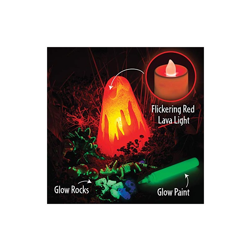 - GROW BY DAY, GLOW AT NIGHT – Bring the fun of gardening indoors with fun glow-in-the-dark accents! Add glowing paint to your dinosaurs and garden accessories, turn-on your light up volcano and watch it glow!