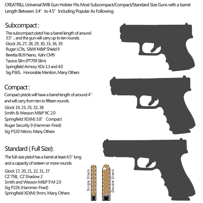 - 2. FITS GLOCK 19, 23, 26, 27, 28, 29, 30, 32, 33, 36, 38, 39 | M&P Shield in 9mm | Ruger LC9 | Taurus Slim Line | Springfield XD Series | Beretta | Bersa | Kahr Arms | Colt | Walther | and many more Compact Pistols.