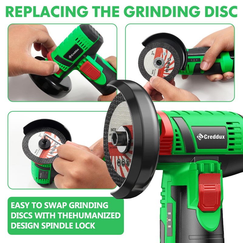 Creddux Cordless Angle Grinder, 3 Inch Mini Angle Grinder Tool With 2pcs 16.8...