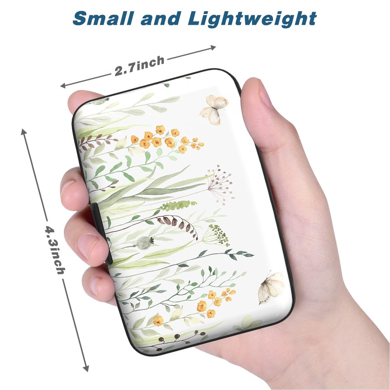 Credit Card Holder, Mini Aluminum Card Wallet RFID Blocking Slim Metal Hard Card Case for Women Men, Butterfly Flowers
