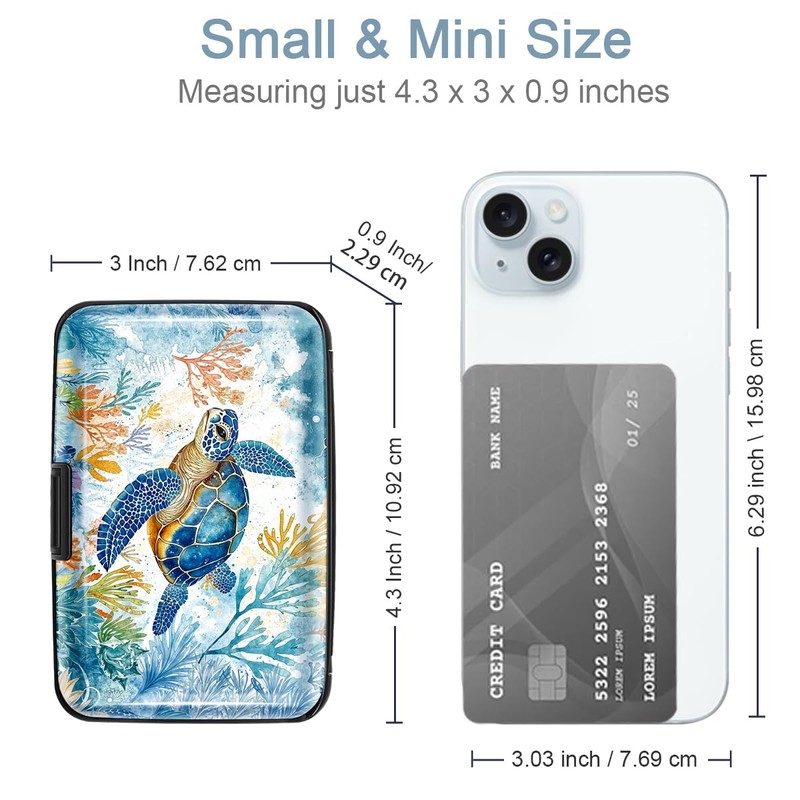 - Aluminum card holder wallets with turtle print on the hard shell, it is cute and fashion, nice gift for women, lady, girls or anyone who loves it; Suitable for Valentine's day, birthday, graduation, Mother's day, Christmas gifts.