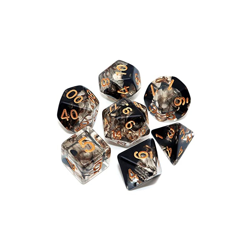 CREEBUY 7Pcs DND Game Dice Set for Dungeon and Dragons D&D RPG Pathfinder Table Games Transparent Mix Black Cloud Polyhedral Dice