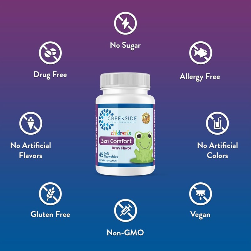 - SOOTHE STRESS WITH NATURAL INGREDIENTS: Our original kid-friendly formula was created by a pediatrician to help kids with tension. Creekside Naturals tablets are zero sugar, gluten free, lactose free, gelatin free, vegan, Non-GMO, and NSF certified for quality and purity.