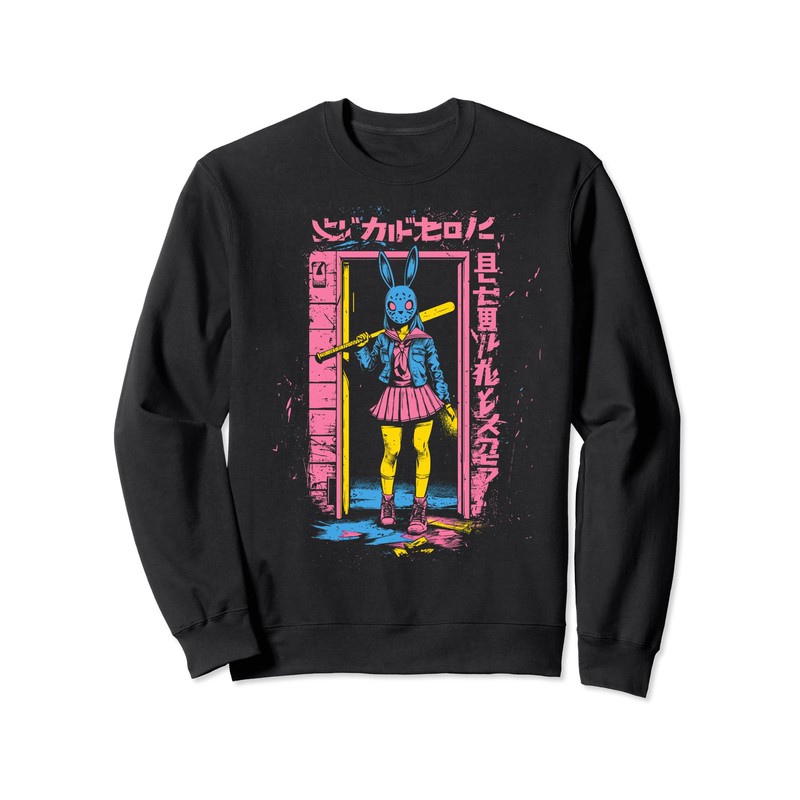 - Embrace the spooky side of Halloween with this piece featuring a creepy girl in a bunny mask, blending pastel goth and anime horror aesthetics. Perfect for fans of slasher themes and eerie vibes, this design captures the chilling essence of the season.