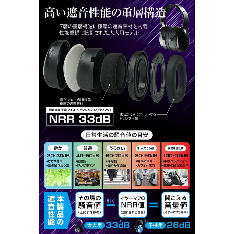 • 2 Models: These earmuffs are sold with different functions that are looking for for different children and adults. To solve these problems, we have prepared 2 types of lightweight model and high performance models that are designed to be lightweight. The lightweight model is mainly designed to be used by children, and it is lightweight and compact at only 6.7 oz (167 g). This high-performance model has been designed with a focus on sound isolation properties, and the NRR33. SPEC Lightweight Model: Weight: 5.6 oz (167 g), Sound Insulating Performance: NRRR 26 dB; High Performance Model: Weight: 10.2 oz (288 g), Sound Insulating Performance: NRRR33 dB
