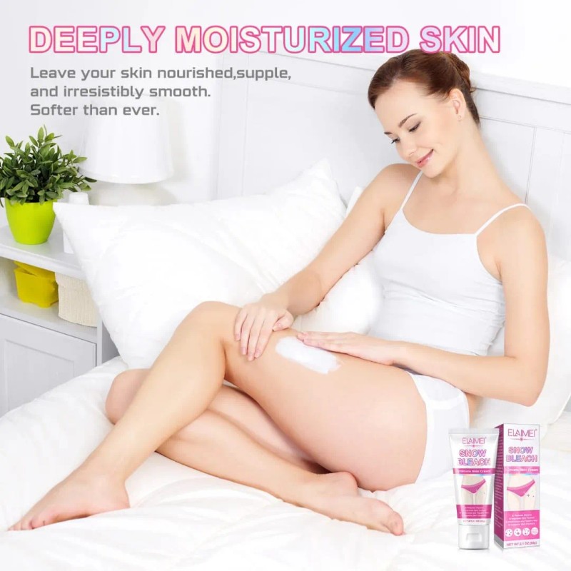 ELAIMEI Snow Bleach es una crema iluminadora diseñada para suavizar, hidratar y unificar el tono de la piel en zonas íntimas y corporales. Su fórmula con ingredientes naturales ayuda a reducir visiblemente la pigmentación oscura en áreas como axilas, entrepierna, rodillas, codos, línea del bikini y más. Actúa sobre la textura de la piel, hidratando profundamente y promoviendo una apariencia más clara, suave y uniforme en pocas semanas.