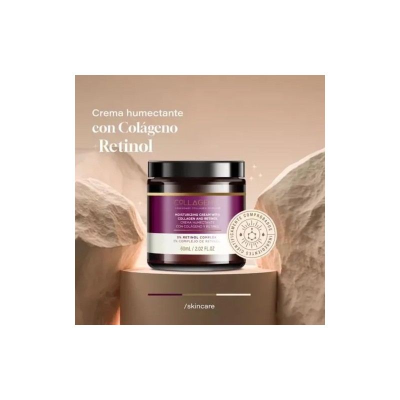 Crema Antiarrugas 60ml. 3% Retinol Complejo, Colageno Hidrolizado - COLLAGENIC Crema Facial Humectante, Antienvejecimiento y Disminuye las líneas de Expresión, Skin care para la noche