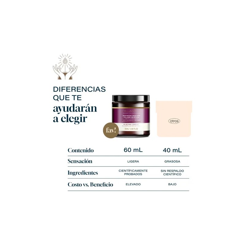 • Principales ingredientes activos: Retinol 3%, Colágeno Hidrolizado