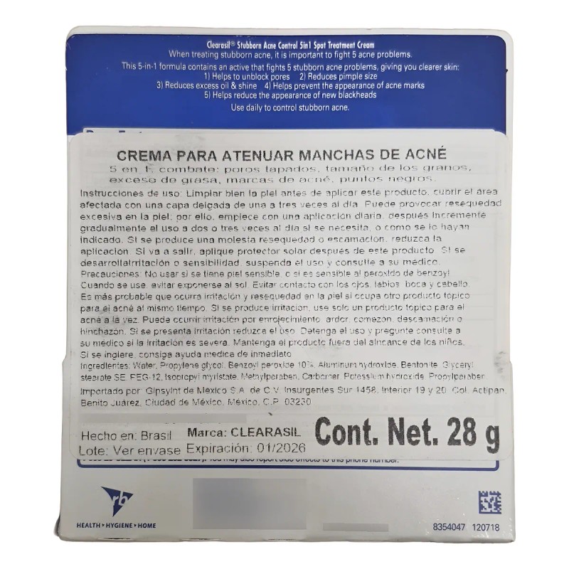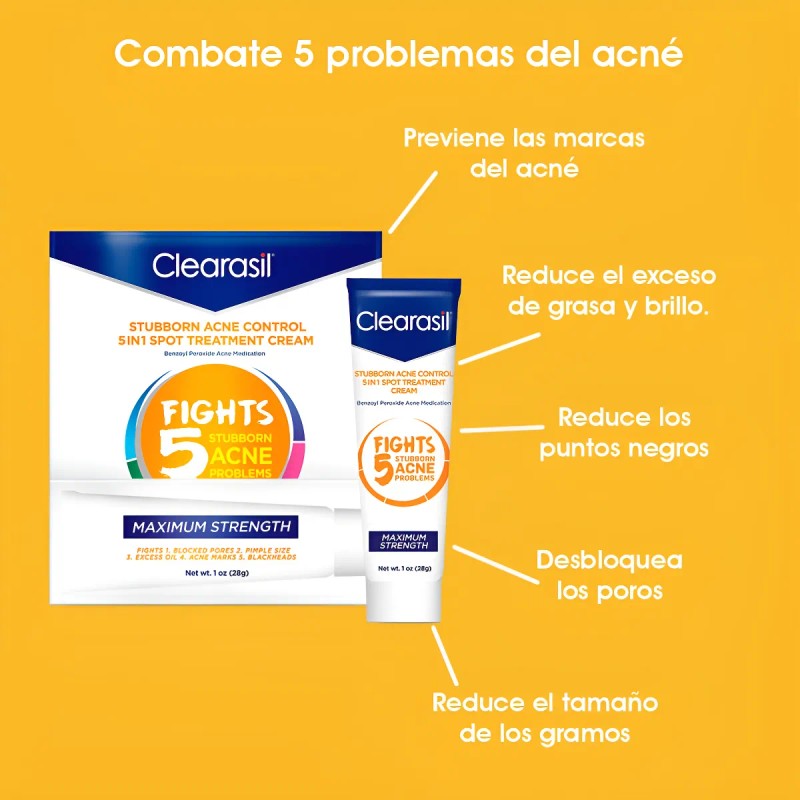 Crema Clearasil Tratameinto Manchas Acne Peroxido Benzoilo Todo Tipo De Piel Día