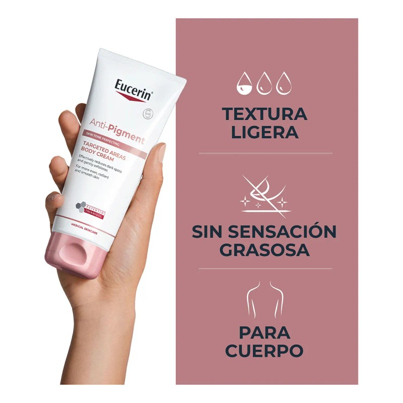 Transforma tu rutina de cuidado personal con la Crema Corporal Anti-manchas Eucerin Anti-Pigment de 200 ml, diseñada para revelar una piel más luminosa y uniforme. 🌟 Este tratamiento avanzado se enfoca en las áreas del cuerpo que más lo necesitan, ayudando a reducir esas manchas oscuras que tanto te preocupan.