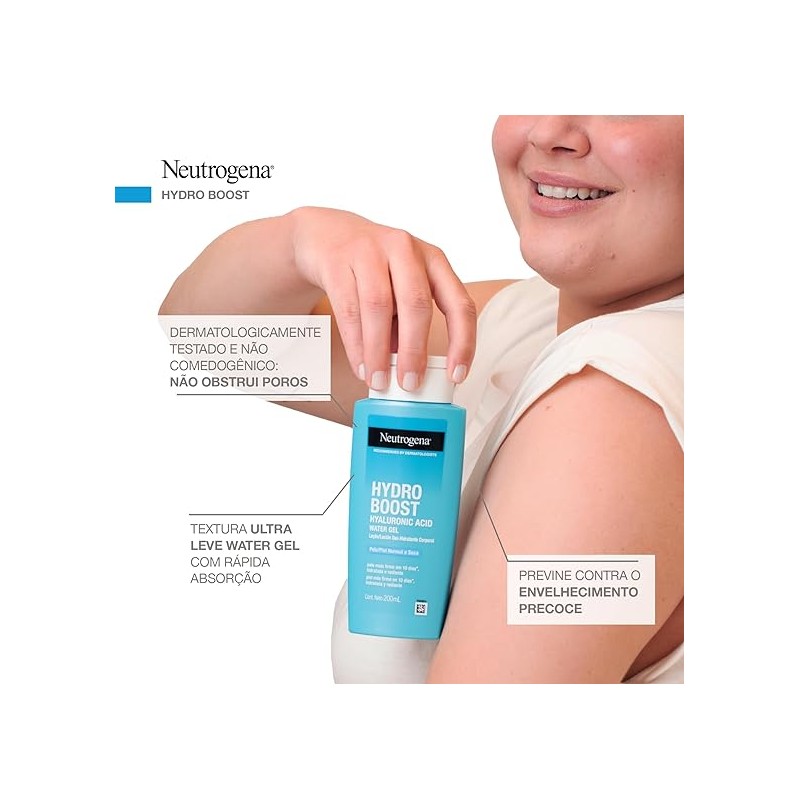 Neutrogena Hydro Boost Corporalcon Ácido Hialurónico que absorbe hasta 1000 veces su peso en agua* liberando la hidratación conforme tu piel lo necesita. El hidratante corporal con textura aqua gel se absorbe rápidamente y no contiene aceite, colorantes, alcohol, parabenos ni fragancias.