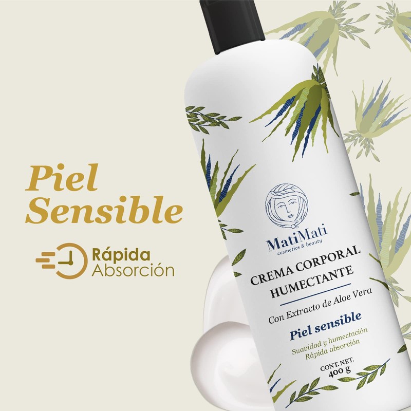 Crema Corporal Humectante Con Extracto Aloe Vera MatiMati Piel sensible, Calmante, Suavizante, Textura ligera 400 g