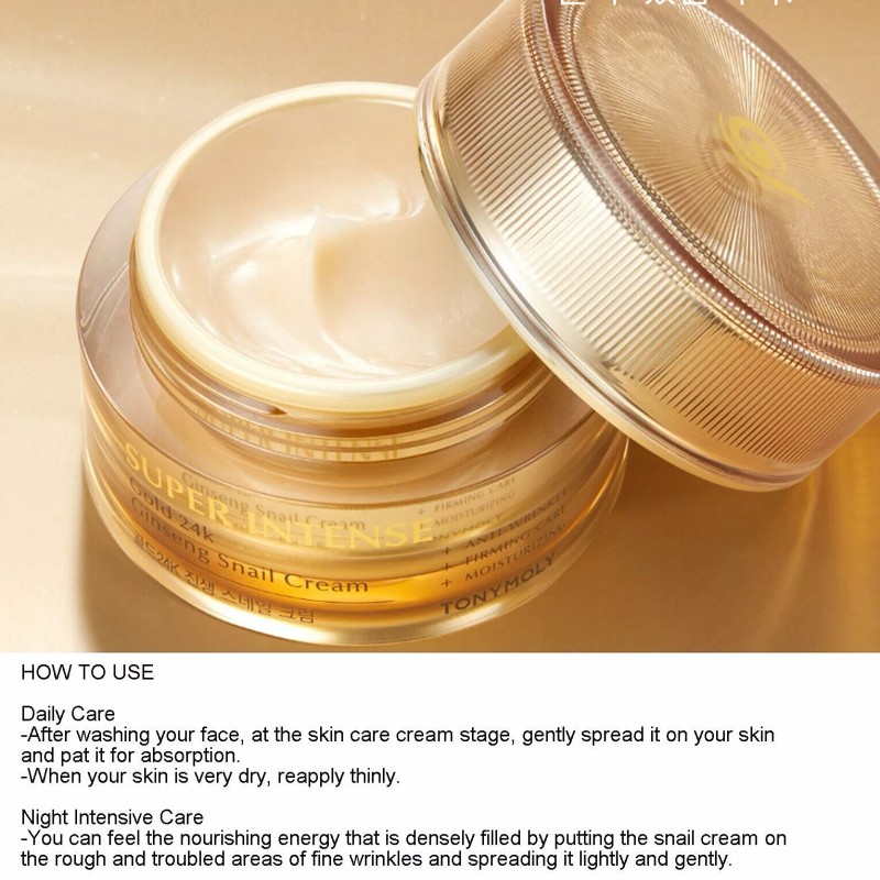 ¡Descubre el lujo coreano para tu piel con TONYMOLY Super Intense Gold 24K Ginseng Snail Cream! 🐌✨