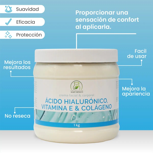 Crema de Ácido Hialurónico, Vitamina E y Colágeno 1 Kilo