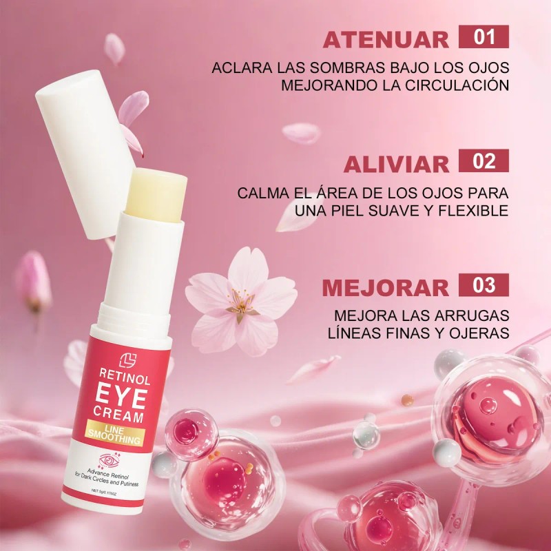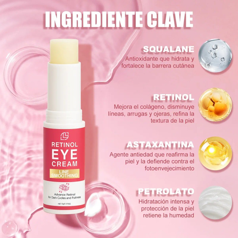 1.Con retinol puro: Estimula la producción de colágeno y mejora la textura de la piel alrededor de los ojos.