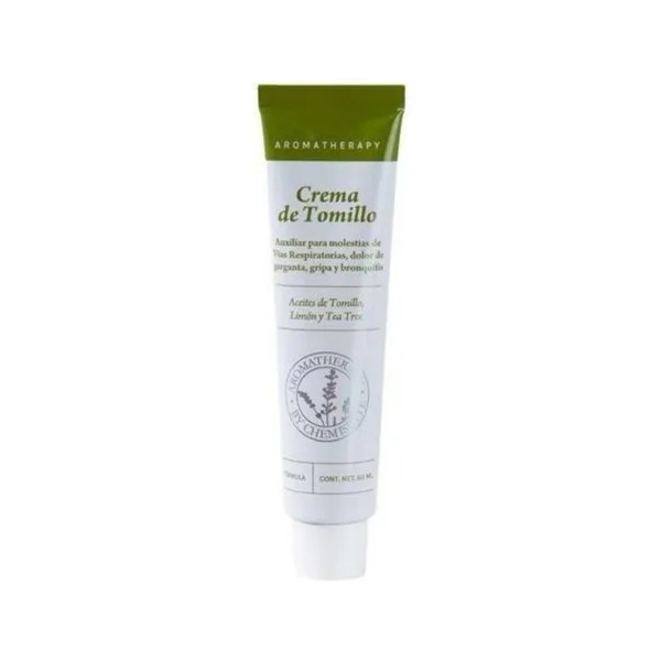 Descripción Limpia: La Crema De Tomillo Chemisette es una crema corporal diseñada para descongestionar las vías respiratorias y calmar la tos, ofreciendo un alivio inmediato con su potente y balsámico aroma terapéutico a tomillo. Ideal para todo tipo de piel, esta crema hipoalergénica se aplica en el cuerpo y proporciona un efecto refrescante que dura hasta 5 horas. Con una consistencia cremosa y un volumen de 60 mL, es perfecta para llevar en cualquier momento. Aunque no es una marca destacada ni TOM, Chemisette garantiza un producto nuevo y de alta calidad. Su envase en pasta facilita su aplicación, asegurando una experiencia revitalizante y calmante.