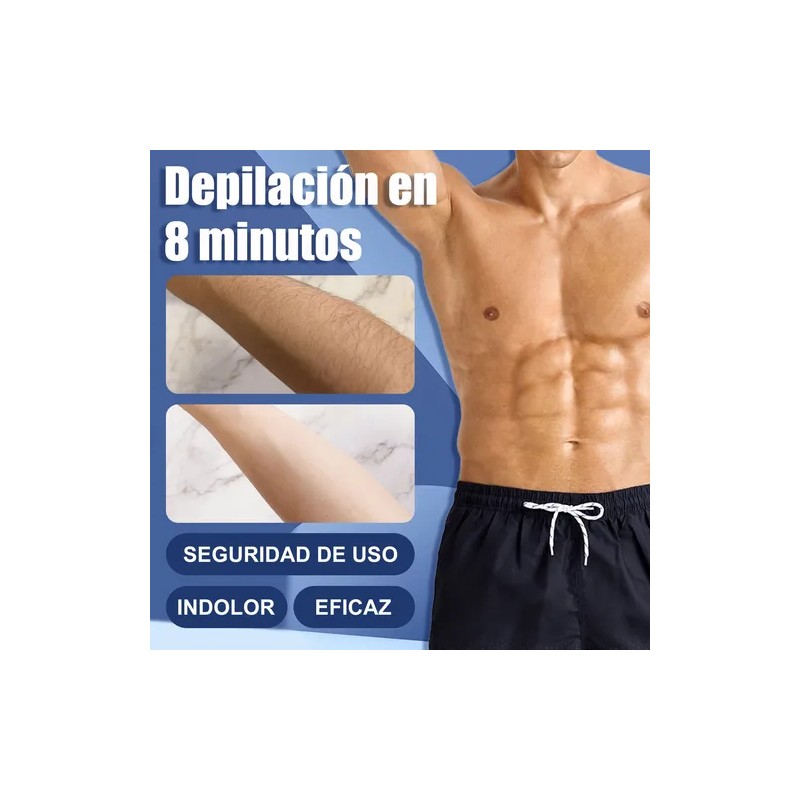 Descripción {Descripción} 1.Depilación suave y efectiva: Elimina el vello no deseado sin dolor ni irritación. 2.Apta para zonas íntimas y todo el cuerpo: Ideal para pecho, espalda, piernas, axilas y área íntima. 3.Fórmula hidratante y sin irritación: Enriquecida con ingredientes calmantes para proteger la piel. 4.Resultados rápidos y duraderos: Actúa en pocos minutos y deja la piel suave por más tiempo. 5.Fácil de usar y sin esfuerzo: Solo aplica, espera unos minutos y retira el vello sin necesidad de rasurar.