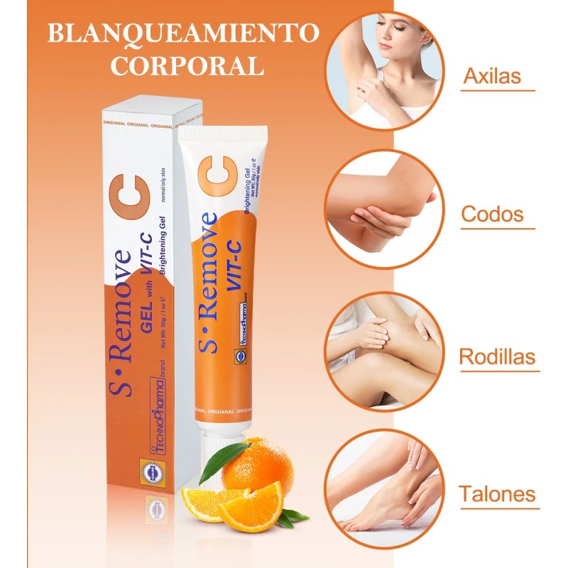 • Gel S.Remove con Vitamina C, 30 ml (1 onza líquida), Eliminación de Manchas: Cuello, Rostro, Cuerpo, Axilas, Manos | Tratamiento Anti