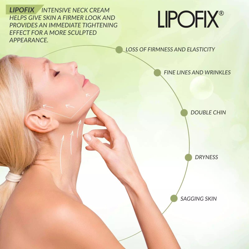 alrededor de la mandíbula y el escote, ¡entonces la crema lifting de cuello Lipofix es perfecta para ti! Nuestra potente crema antienvejecimiento para el cuello tensa y rejuvenece la piel, haciéndola parecer más joven y brillante después de solo unas pocas aplicaciones