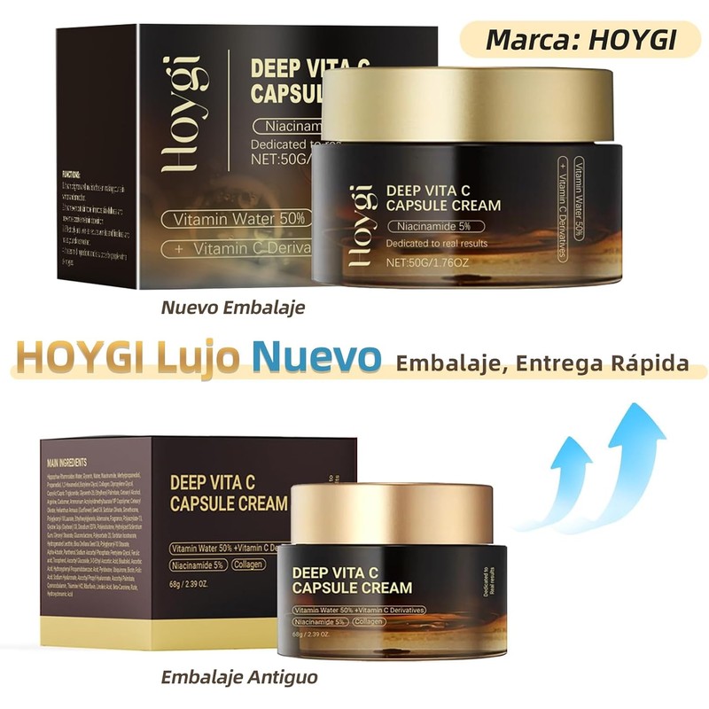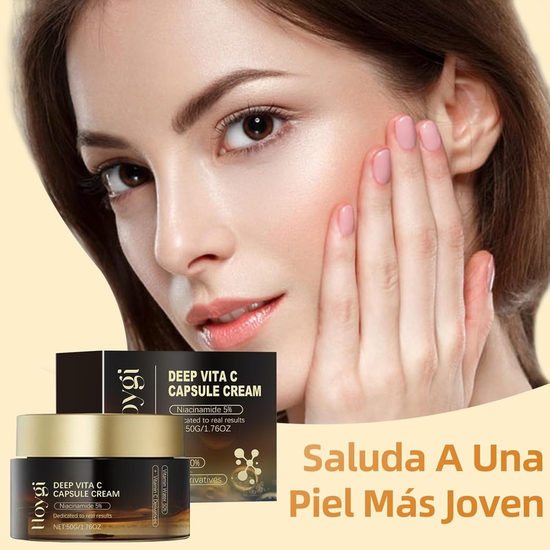 Crema Deep Vita C Capsule: una fórmula ligera con vitamina C, colágeno y otros ingredientes activos que hidratan, protegen y mejoran la textura de la piel. Rica en vitamina C y E, unifica el tono y reduce imperfecciones, dejando la piel radiante y juvenil. Contiene niacinamida que protege y retiene la humedad, calmando la irritación. Probada para ser suave y no irritante, con un pH de 5,8-7,8, ideal para uso diario. Empaque sostenible y garantía de calidad con atención al cliente.