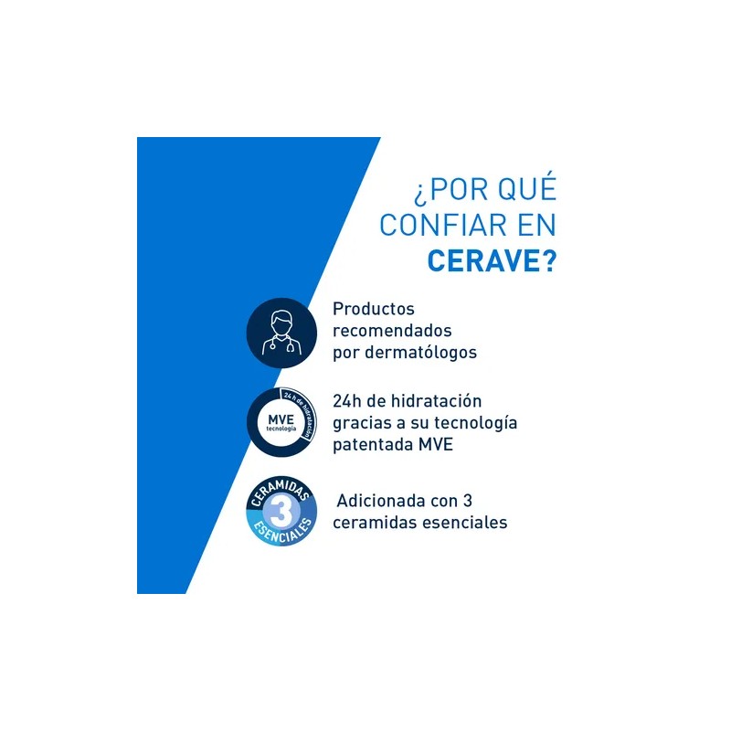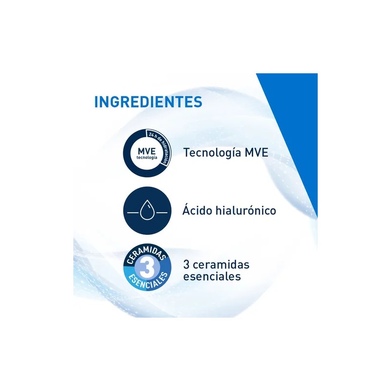 Desarrollada y Recomendada por dermatólogos, esta crema cuenta con la Tecnología patentada MVE que mantiene la piel hidratada durante 24 horas.