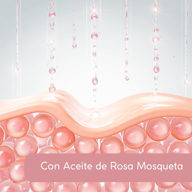 - 🌺Con aceite rosa mosqueta rico en antioxidantes y vitaminas que se absorben en las capas mas profundas de la piel estimulando la producción de colágeno y reduciendo las líneas de expresión.