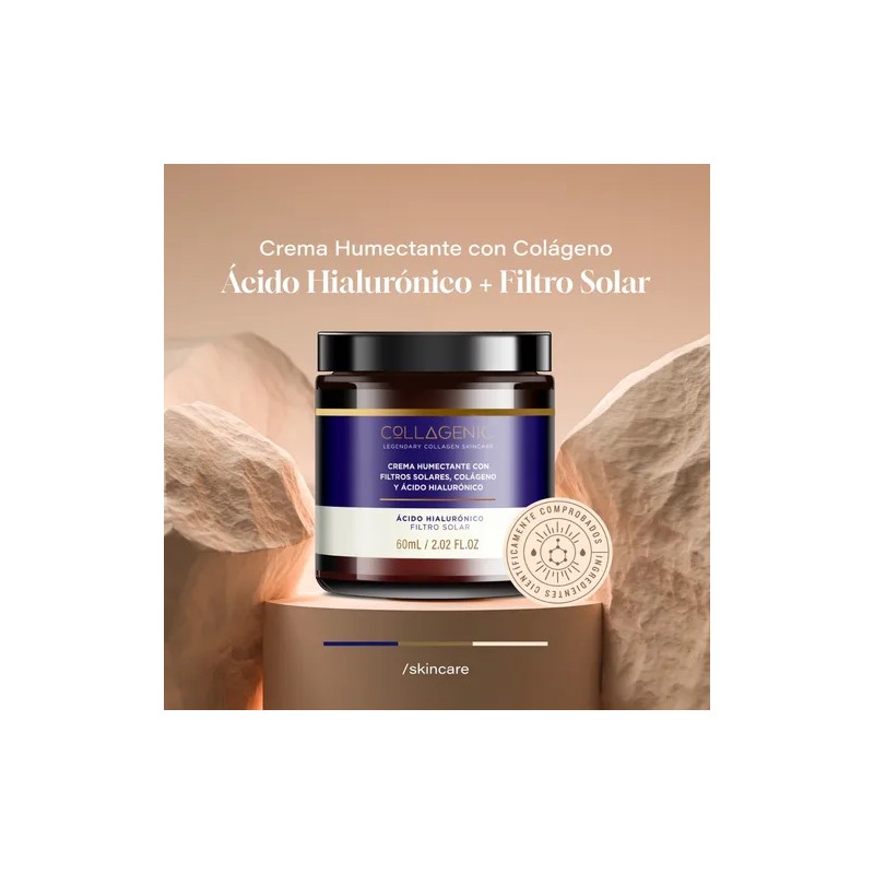 Esta crema está formulada para proporcionar una hidratación profunda y mejorar la elasticidad de la piel, gracias a la combinación de ácido hialurónico y colágeno.