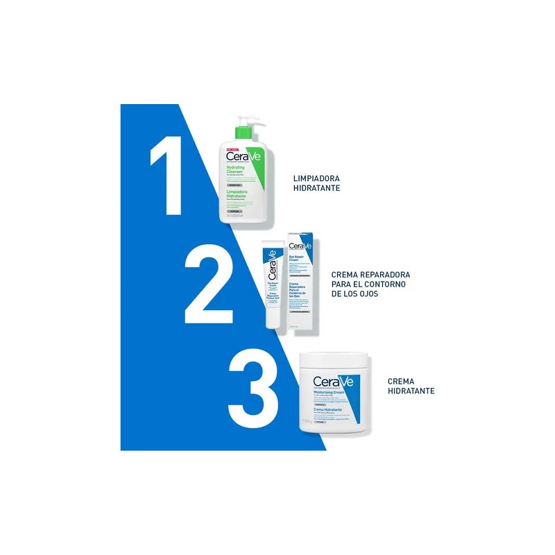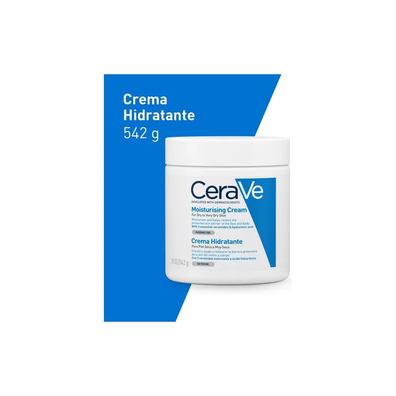 La Crema hidratante CeraVe incluye 3 ceramidas esenciales y Ácido Hialurónico para hidratar eficazmente la piel y restaurar la barrera protectora. Desarrollada con dermatólogos, esta crema cuenta con la Tecnología patentada MVE que mantiene la piel hidratada durante 24 horas. No es grasosa y es de rápida absorción, Apta para piel seca a muy seca, piel irritada, con comezón, psoriasis o dermatitis atópica.