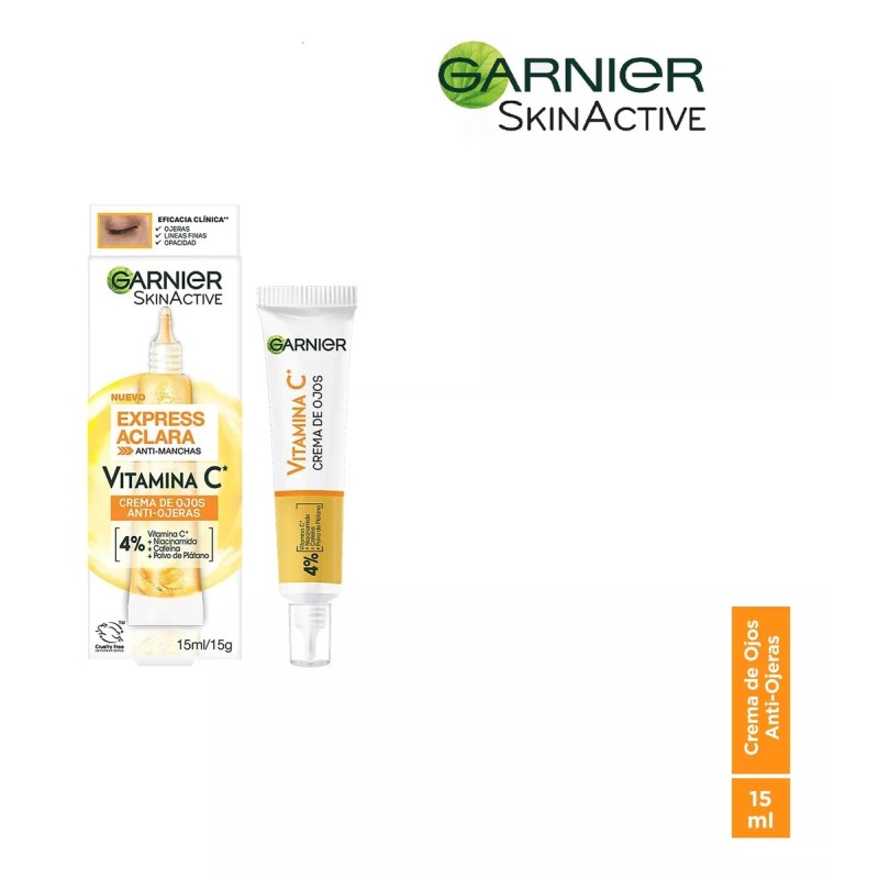 - Marca: Crema para ojos Garnier Skin Active express aclara vitamina C antiojeras 15 ml