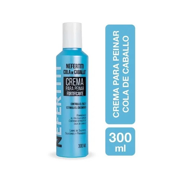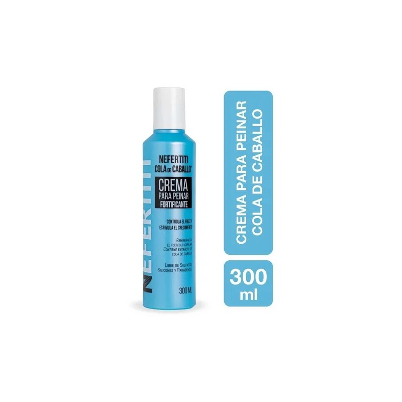 La Crema Para Peinar Fortificante con Cola de Caballo de Nefertiti es el complemento perfecto para lograr un cabello más fuerte, brillante y manejable. Su fórmula libre de parabenos, sulfatos y siliconas, está enriquecida con extracto natural de cola de caballo, que fortalece la fibra capilar, mejora la textura y estimula el crecimiento del cabello desde la raíz. Ideal para combatir el frizz, mantener la hidratación y proteger el cabello seco o maltratado. Puede aplicarse sobre cabello húmedo o seco, sin enjuague, dejando una melena saludable, suave y con un aspecto revitalizado.
