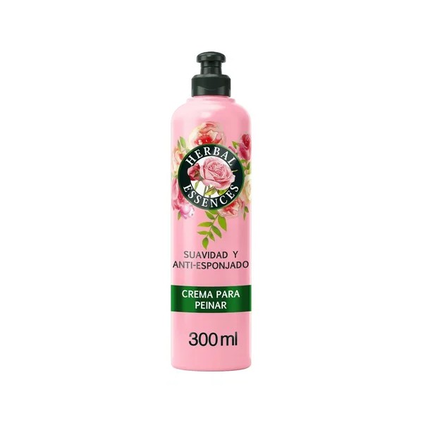 Logra una transformación instantánea en tu pelo con la Crema para Peinar Suavidad y Anti-esponjado Rosa Mosqueta de Herbal Essences.