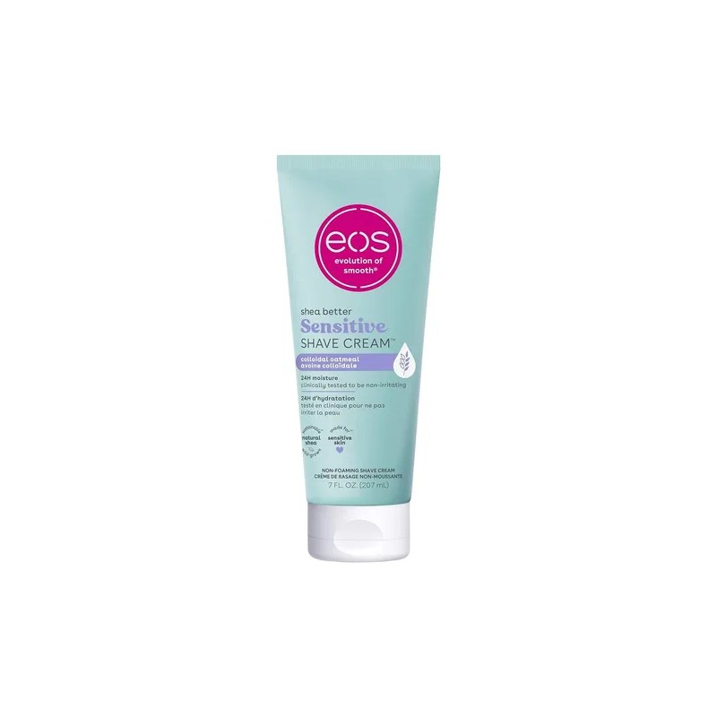 La crema de afeitar para piel sensible de eos es especialmente diseñada con una fórmula que otorga 24 hrs de humectacion, clinicamente avalado y probado para pieles sensibles, baja en espuma, contiene manteca de Karite y aceites naturales para brindarte un afeitado al ras humedo o seco que dejara tu piel sensible como la seda. Libre de Parabenos y Ptalatos.