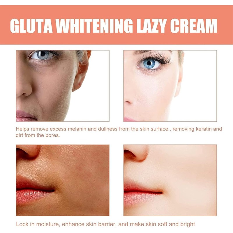 - 【Crema perezosa blanqueadora de gluta】Nuestra crema perezosa blanqueadora de gluta aporta ciencia avanzada al cuidado de la piel. Crema blanqueadora para el cuidado de la piel orgánica, potentes humectantes que penetran en las capas más profundas y externas de la piel. Ilumina el tono de la piel y mejora la piel apagada.