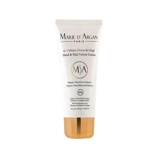 Descripción Limpia: La Crema Reparadora para Manos y Uñas de Marie d’Argan desvanece arrugas, devuelve suavidad a la piel reseca e hidrata las cutículas. Su fórmula contiene Ácido Hialurónico, el cual densifica las fibras de colágeno que pierden elasticidad con el tiempo y disminuye los signos de la edad. El Colágeno Marino regenera y fortalece la piel, mientras que el Hibiscus aporta hidratación y restaura la piel maltratada.