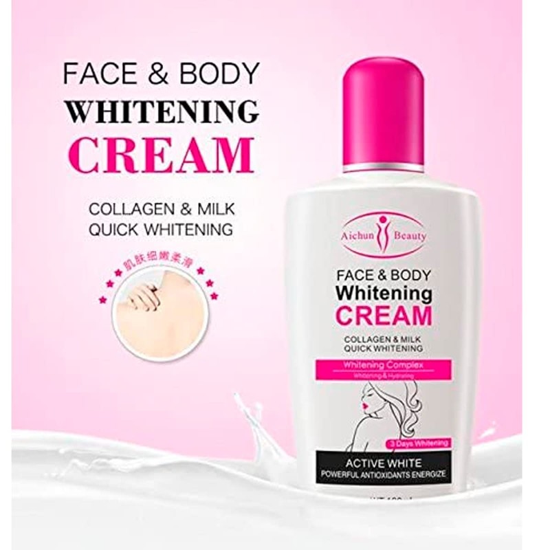 Crema Suave Aclaradora Aichun Beauty Para Cara y Cuerpo Aclara Rodillas Codos Axilas Brazos Espalda con Leche y Colágeno Hidrata y Suaviza la Piel 120 ml