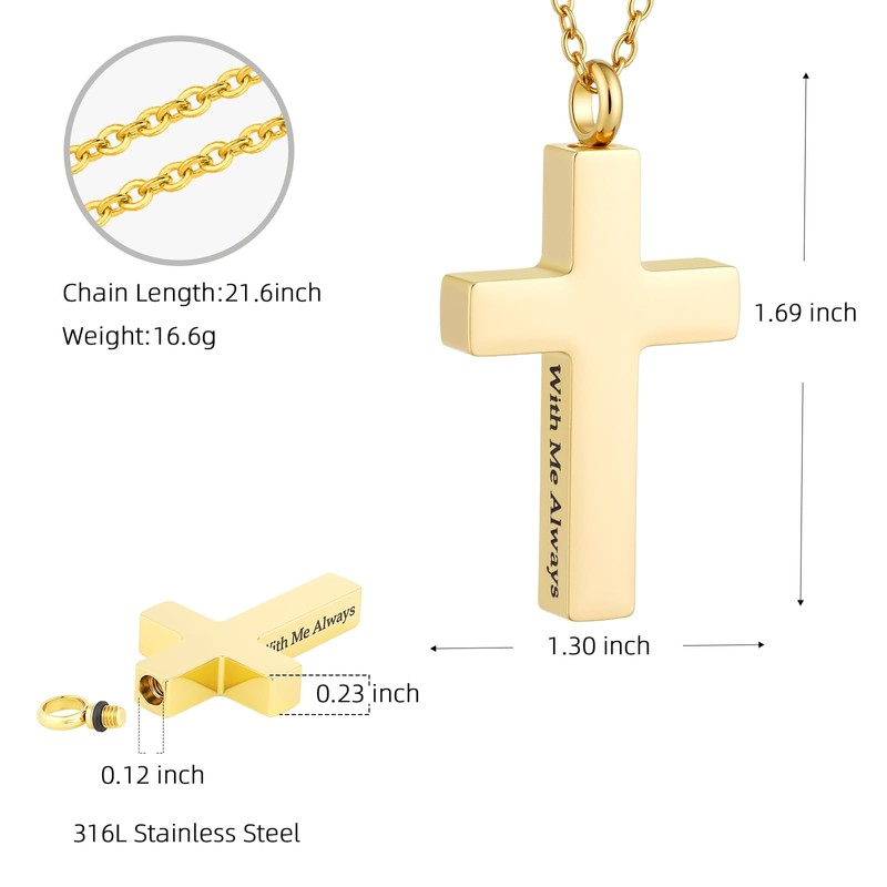 - 【Meaning】"With Me Always" Cross ashes necklace can be opened on the top, which means your love and blessing for your loved ones and keep them close to your heart.To anyone who has lost a loved one (family or pet) my heart goes out to you and this item may bring some comfort. Hold on to all of those amazing memories