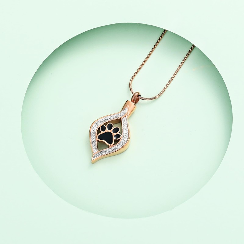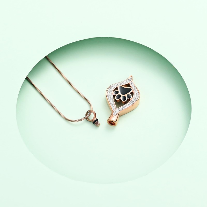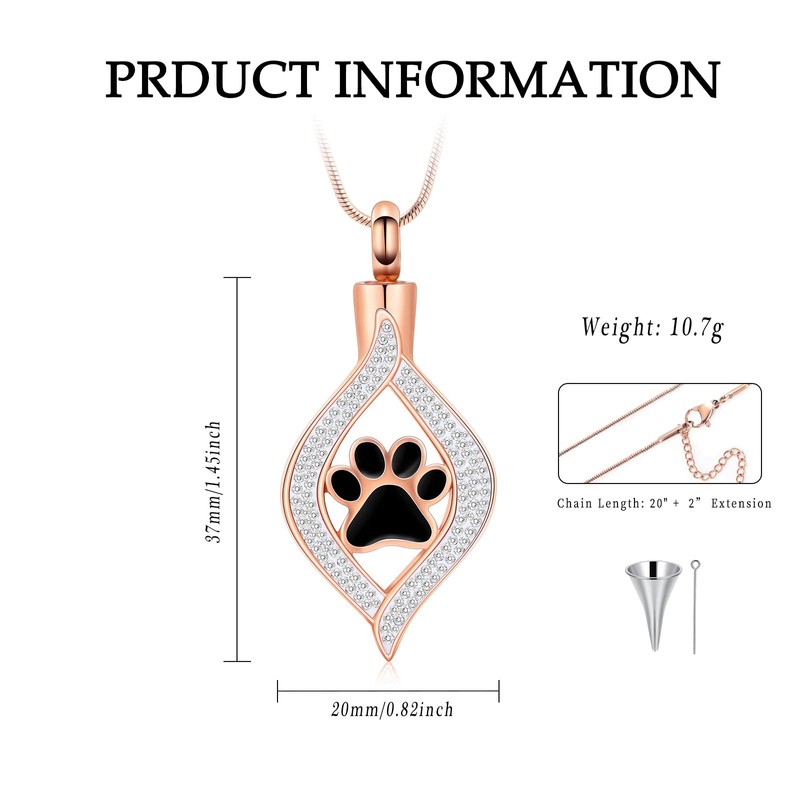 - 🐾【High Quality】Dog/Cat Paw Print Cremation Urn Necklace Made of Stainless Steel, it will not fade, tarnish, rust or stain! Keepsake memorial urn necklace can be used to hold hair, dried flowers , cremains, perfume or a small amount of a loved pet's ashes. It does no harm to our skin and health at all. Kids can also wear safely.