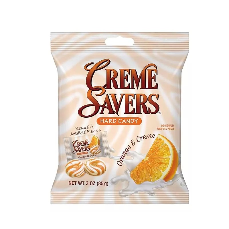 • This 3oz (12 count) orange creme chews bag is a convenient option for both home and office. Creme Savers are brought to you by Iconic Candy which is dedicated to bringing people together to enjoy the finest time-honored candy.