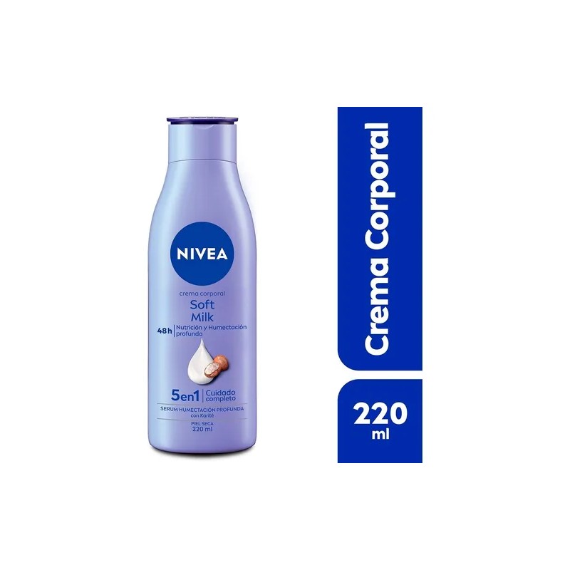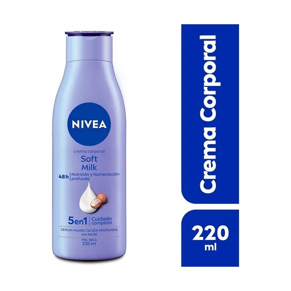 Nivea soft milk crema corporal está enriquecida con serum humectación profunda y Karité logrando así cuidar de la piel seca.