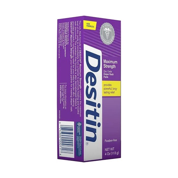 Tubo de 4 onzas de pasta Desitin de máxima resistencia para sarpullidos de pañales con 40% de óxido de zinc, actúa en contacto para tratar y prevenir la incomodidad de la erupción de pañales.