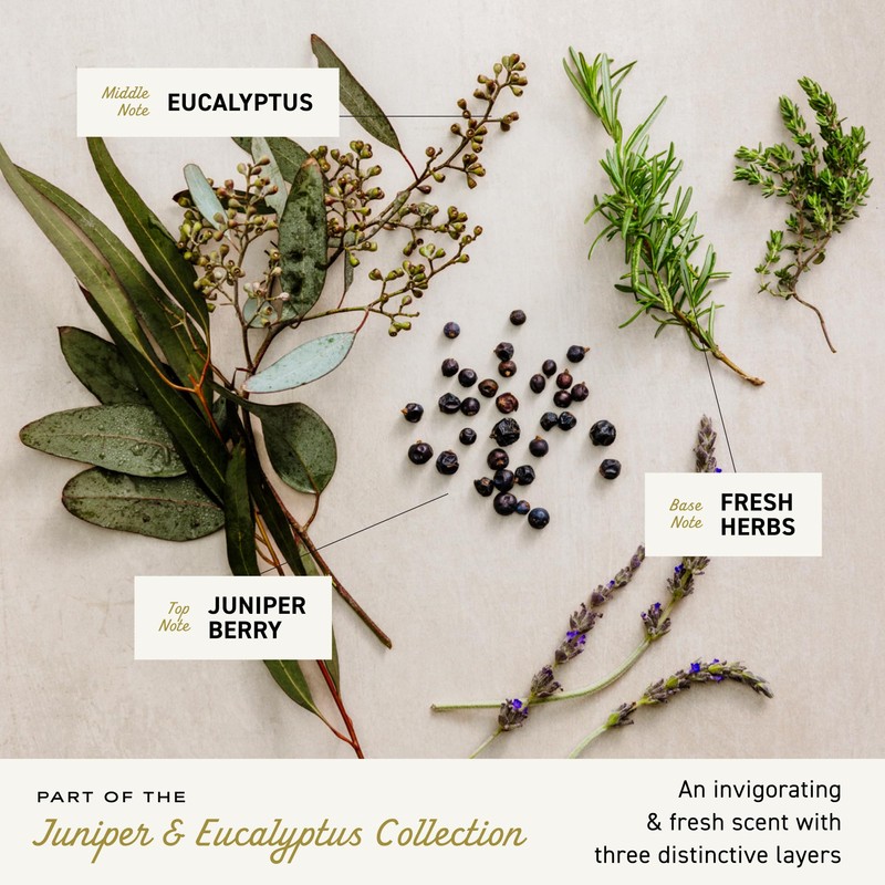 A clean, invigorating blend of juniper berry, eucalyptus, and fresh herbs that energizes your senses as you wash. -