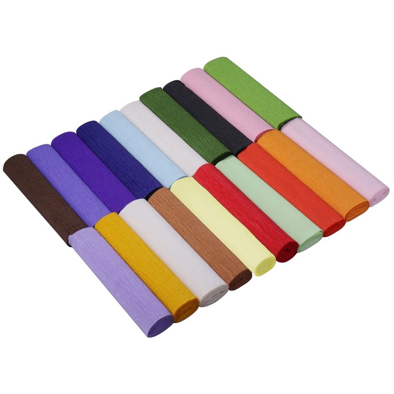 Crepe Paper for Crafts, Set of 5 to 20 Colors, Crepe Paper, Approx. 9.8 x 9.6 ft (25 x 2.5 m) (20 Colors Total)