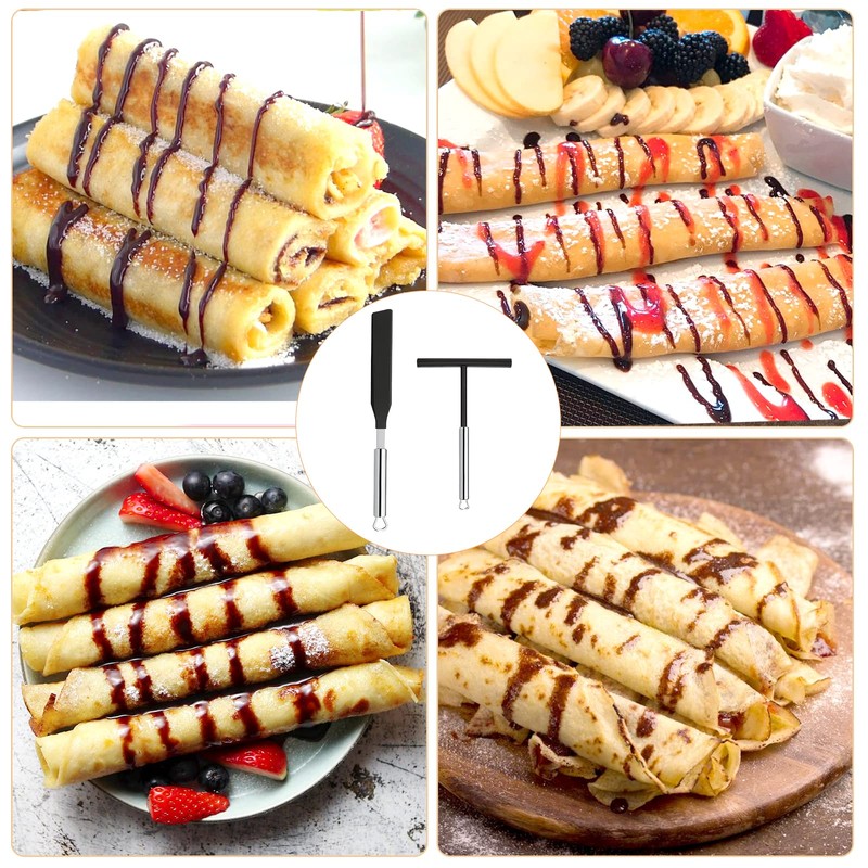 Crepe Spreader and Spatula Crepe Spatula Set Stainless Steel Crepe Tools Spreaders Spatula T- Shaped Batter Spreaders and Spatula Set
